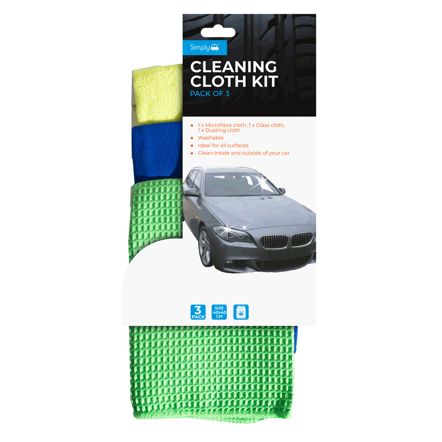 PACKAGE INCLUDES - Pack of 3 - 40x40cm cloths wash every area of your car.