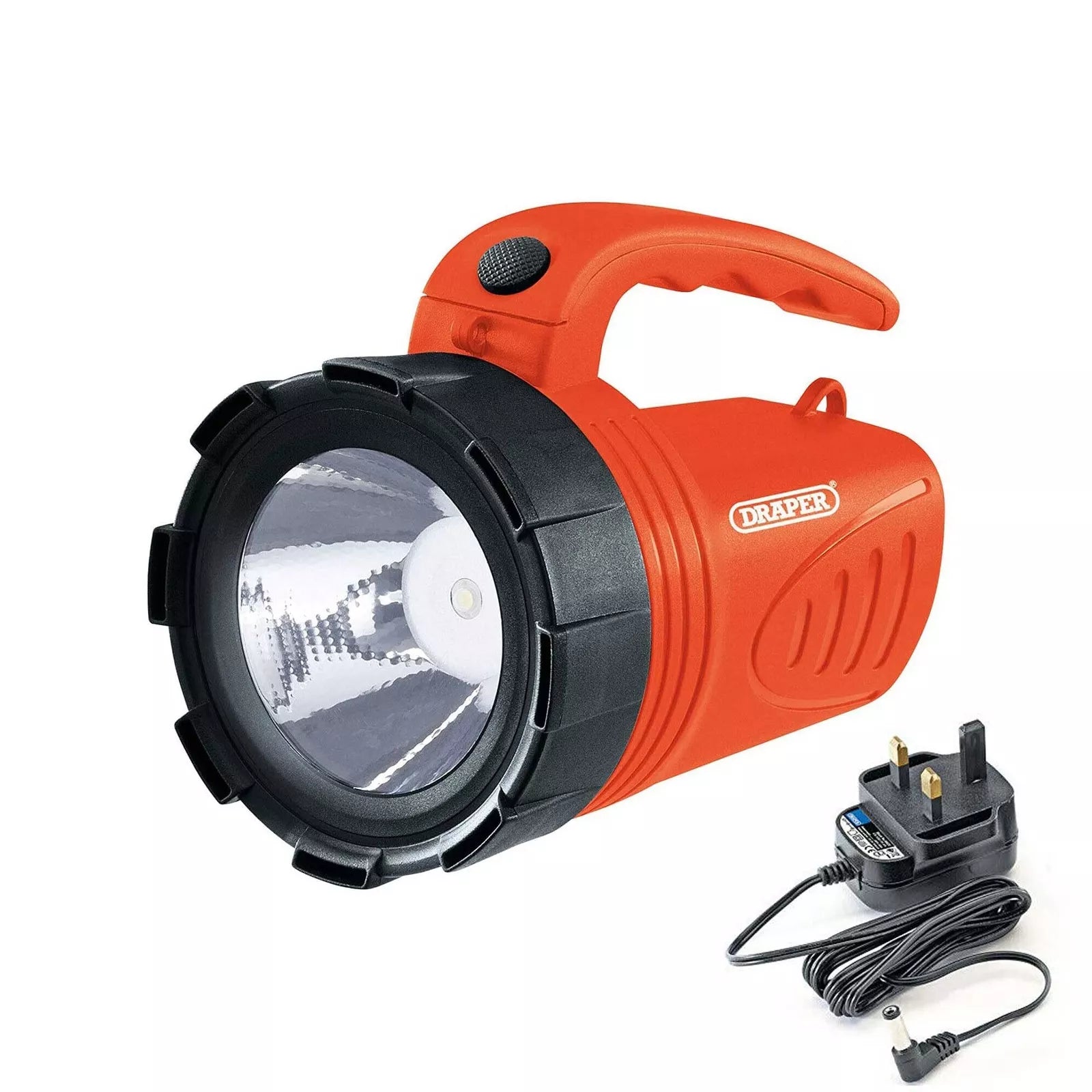 3W li-ion rechargeable hand torch producing a 200 Lumen 150m beam of light (full/half) lighting functions. Ideal for camping, caravanning, vehicle breakdowns, security and many other situations. Made from high quality, impact resistant ABS plastic. Supplied with 3 pin 230V AC mains adaptor.