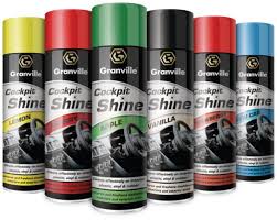 Granville Cockpit Shine is a silicone based Cockpit Shine that restores that 'new look shine' to all interior and exterior trim. Availiable in Lemon, Apple, Strawberry, Cherry, New Car and Vanilla fragrances leaving a pleasant aroma and an anti-static finish that reduces dust build-up.