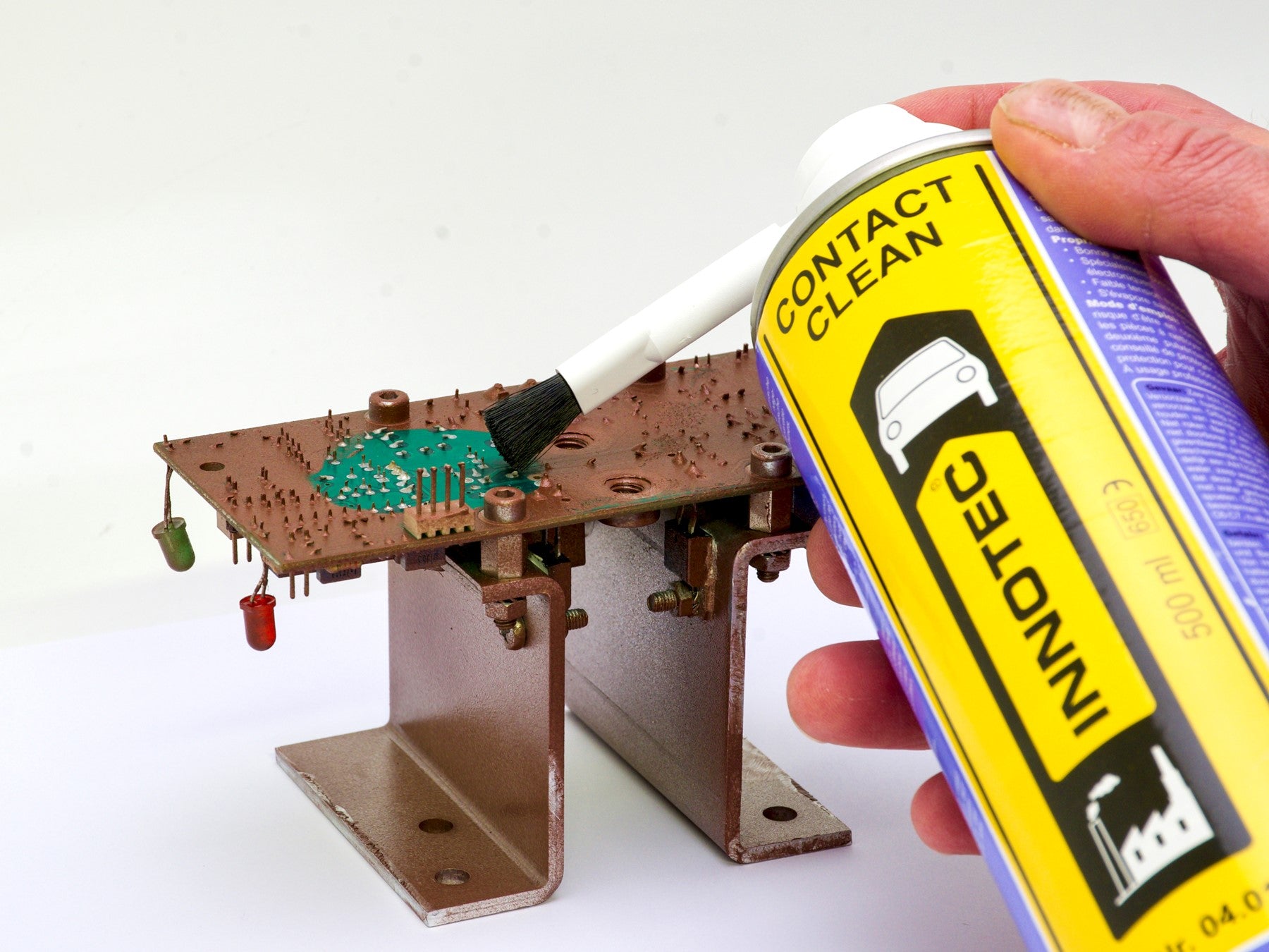 Contact Clean is indispensable upon repairing and checking electronic and electrical circuits in vehicles, machines, sound equipment, computers, etc. since many of these electronic connections are in places which are highly exposed to the action of the weather and the effects of grease, dirt and salt. Contact Clean removes oxidation, dirt and grease, thereby guaranteeing good conductivity.